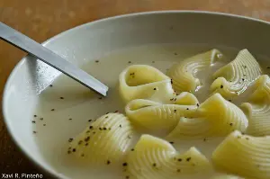 Es ist eine wahre Fleischorgie, die nicht nur dem Koch Zeit und jede Menge Zutaten abverlangt. Das Essen muss auch in aller Ruhe zelebriert werden. Dabei wird die Escudella in zwei Gängen eingenommen. Erst isst man die gehaltvolle Brühe, in der schneckenförmige Galets-Nudeln – zum Teil auch kleine Hackfleischbällchen schwimmen -, der zweite Gang besteht dann aus dem, was in der Brühe gegart wurde – verschiedenen Fleisch- und Gemüsesorten, Kichererbsen sowie die Pilota, ein dicker länglicher Fleischkloß. Natürlich hat jede Familie ihr eigenes Rezept. Die einen geben statt Kichererbsen dicke weiße Bohnen in die Suppe, andere füllen die Nudeln zusätzlich mit Hackfleisch oder geben kleine Hackfleischbällchen hinein. Mittlerweile halten sich auch nicht mehr alle an die strenge Abfolge. Manche tischen nur den mit allen Zutaten gemischten Eintopf auf, andere lassen auf die Suppe einen Braten, vielleicht auch einen Fischgang oder Meeresfrüchte folgen.