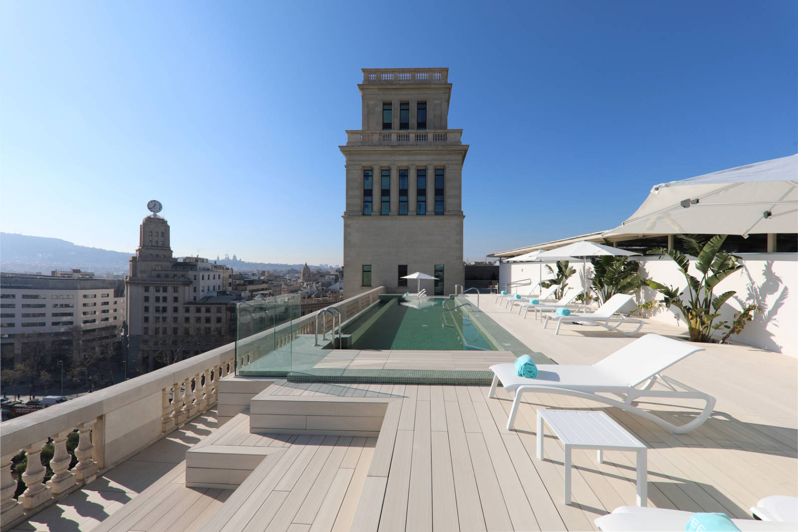 Die SkyBar liegt im Epizentrum Barcelonas am Passeig de Gràcia und bietet eine perfekte Aussicht auf die Plaça Catalunya und die Rambla. Wer den Blick in die Ferne schweifen lässt, sieht von hier aus auch die Türme der Sagrada Familia und das Mittelmeer. Die Terrasse der SkyBar präsentiert sich in ebenso minimalistischem wie cosmopolitischen Design. Dieses harmoniert perfekt mit der Architektur des Hotel Iberostar, einem historischen monumentalen Gebäude im klassizistischen Stil. Zu den einzigartigen Features der SkyBar zählt der Infinity Pool mit Blick auf die Plaza Catalunya. Für einen relaxten Aufenthalt sorgen bequeme Liegen und Tischchen.  Weitere Infos gibt es hier.