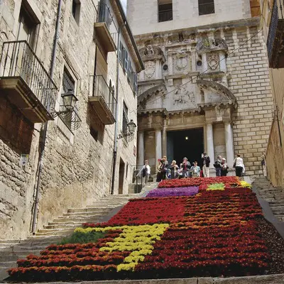 Für neun Tage hüllt sich die ehrwürdige Stadt in bunte Farben und blumige Aromen, ersinnt kunstvolle, nie gesehene florale Installationen, zeigt alles her, was sie hat und lockt den Besucher zu verborgenen Winkeln und Orten, die für den Rest des Jahres der Öffentlichkeit verschlossen bleiben. Gironas beeindruckendes architektonisches und historisches Erbe zeigt sich dieser Tage in seinen schönsten Kleidern, hüllt sich in Haute Couture aus Blumen und genießt den Rummel, die Bewunderungsrufe und die eine oder andere kreative Extravaganz.