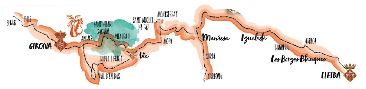 Entlang des Flusses Llobregat führt die Route zum erwähnten Montserrat, und von dort geht es über die Autobahn A-2 nach Igualada. Lange Zeit war die Industriestadt ein wichtiges Zentrum der Lederverarbeitung. Die alten Textilfabriken aus dem 19. Jahrhundert sowie der „Rec“, ein kanalisierter Wassergraben von drei Kilometern Länge, der den Lederfabriken Wasser aus dem Fluss Anoia zuführte, gehören zum architektonischen und industriellen Erbe der Stadt. In aller Munde ist Igualada auch durch das „European Balloon Festival“, das alljährlich im Juli stattfindet.