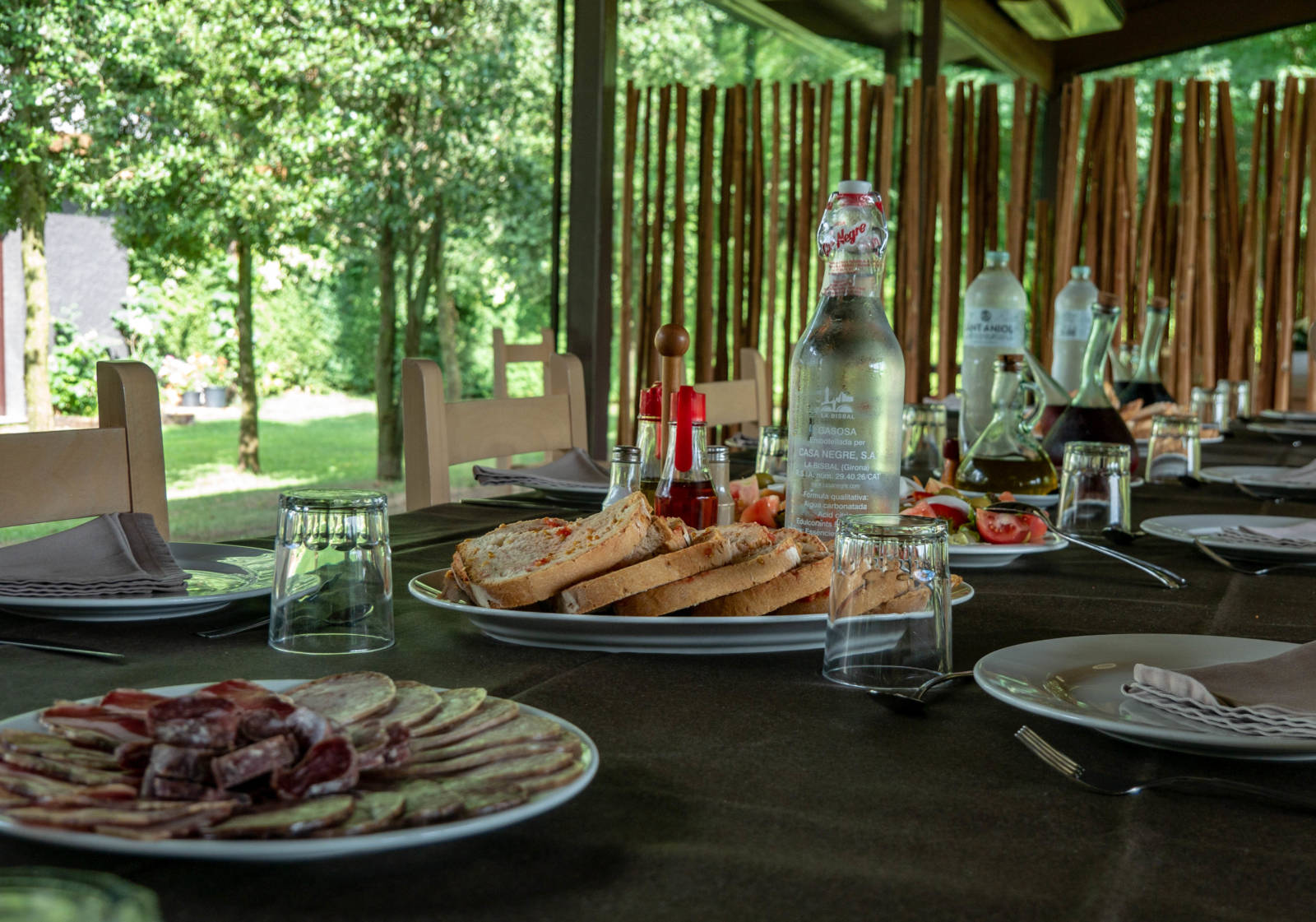 Nach dem Ausflug in den Himmel wartet ein kräftiges zweites Frühstück auf die hungrigen Ballonfahrer. Es gibt deftige kalte und warme Speisen. Neben den traditionellen Wurst- und Aufschnittspezialitäten, für die Olot über die Stadtgrenzen hinaus bekannt ist, wird ein ganz besonderes Gericht serviert: Botifarra de perol amb fesols, eine katalanische Kesselwurst mit den feinen weißen Bohnen aus Santa Pau. Traditionelle regionale Küche, frischer geht’s nicht.