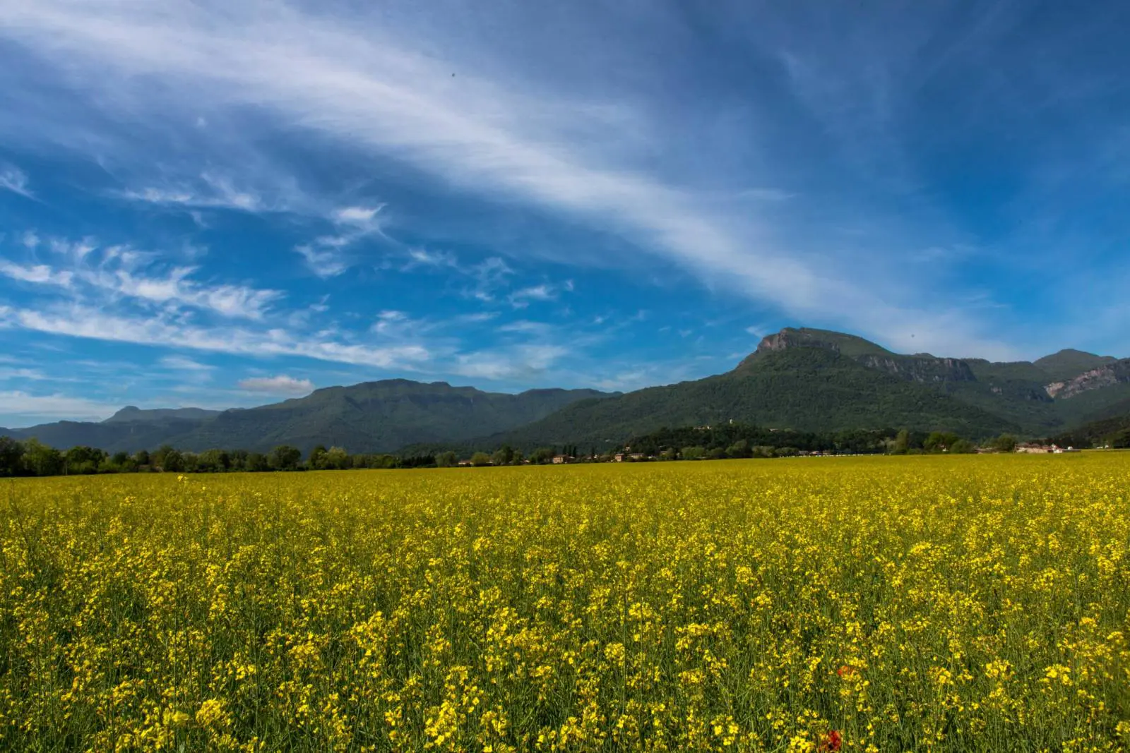 Umgeben von den Hügeln und Gipfeln der Vulkanlandschaft La Garrotxa liegt eine fruchtbare Ebene namens Vall d’en Bas. Wenn Bauern vom Paradies träumen, dann sieht ihr Traum den Landschaften des Vall d’en Bas vermutlich recht ähnlich. Die sanfte Landschaft hütet die wohl fruchtbarsten Böden Kataloniens. Die Felder sind weit und üppig, das Gras grün und saftig und die Kühe glücklich. Was also liegt näher, als das bäuerliche Paradies mit Gästen zu teilen, die ganz entspannt die vielen schönen Facetten des Landlebens kennenlernen möchten…