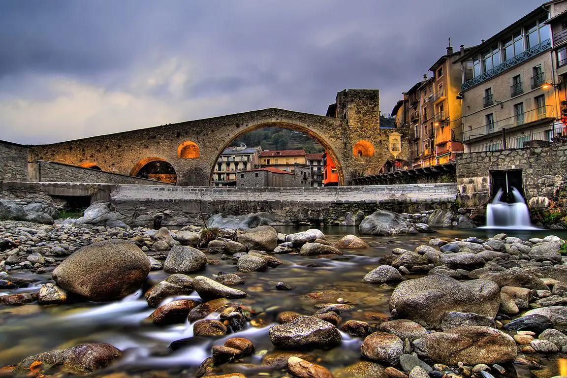 Weiter nördlich – auf halber Strecke zwischen Olot und Ripoll – liegt Camprodon. Die Erkundung des erstmals im 12. Jahrhundert urkundlich erwähnten Dorfes kann schon einmal einen ganzen Tag in Anspruch nehmen – so reich ist Camprodon an Monumenten (und Attraktionen). Stellvertretend sei die sogenannte „neue Brücke“ („El Pont nou“) erwähnt, eine mittelalterliche Kreisbogenbrücke über den Ter.