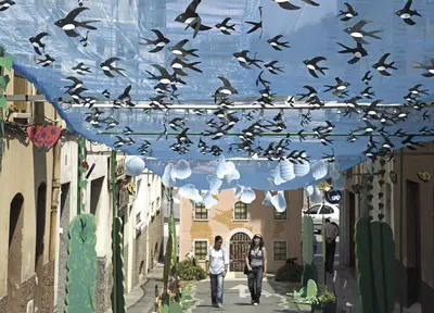 So kommt es, dass man sich bei einem Besuch der Enramades gelegentlich wie Alice im Wunderland fühlt. Zu den traditionellen, kunstvoll aus Blütenblättern gelegten catifes gesellen sich heute nicht nur Blumen und Märchenwesen aus Krepppapier, sondern auch experimentelle Kunst aus gefärbtem Holzmehl und Hobelspänen, aus Kaffeesatz und Kaffeekapseln und allem, was sich ansonsten noch recyceln und attraktiv in Szene setzen lässt.