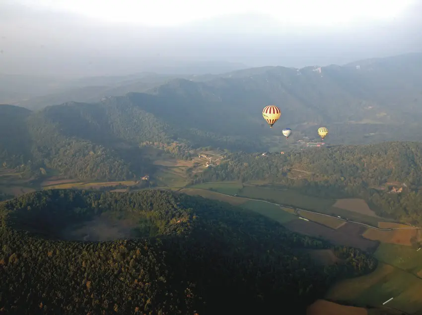 Seit 25 Jahren bietet das Unternehmen Vol de Coloms die Möglichkeit, den circa 1,5-stündigen, leisen Flug zu unternehmen. Am Randgebiet des mittelalterlichen Dorfes Santa Pau beginnt das Abenteuer gegen 7 Uhr früh mit den Vorbereitungen des Heißluftballons, das nach dem Flug mit einem üppigen traditionellen katalanischen Frühstück endet. Verschiedene Arten von Wurst und pa amb tomàquet (Brot mit Tomaten) gehören natürlich dazu, sowie Produkte der lokalen Genossenschaft La Fageda, welche in ganz Katalonien geschätzte Joghurts oder Marmeladen mithilfe von Menschen mit Behinderungen produzieren. Denn bei La Fageda handelt es sich um eine etablierte Firma mit sozialem Bewusstsein.