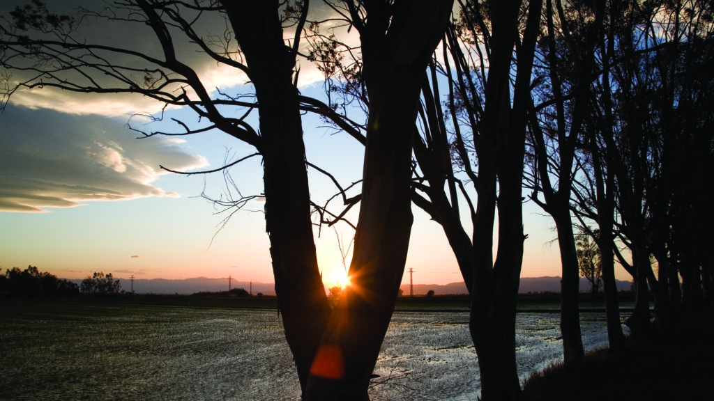 Sonnenuntergang über dem Reisfeld im Ebrodelta © Miguel Raurich