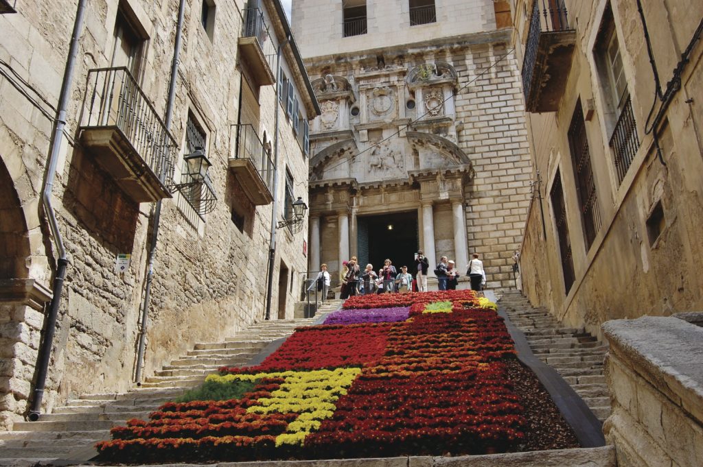 Das Blumenfest Temps de Flors ist eine Spezialität von Girona. Wer es bislang noch nicht geschafft hat, die historische Schönheit am Fluß Onyar zu besuchen, der notiere die zweite Maiwoche für diese Unternehmung: Ganz Girona feiert dann die „Zeit der Blumen“. Historische Gebäude, verwinkelte Patios, Brücken, Treppen,  Gassen, Alleen, Parks und Plätze – selbst die Verkehrsknotenpunkte hüllen sich in kunstvolle Blumenarrangements.